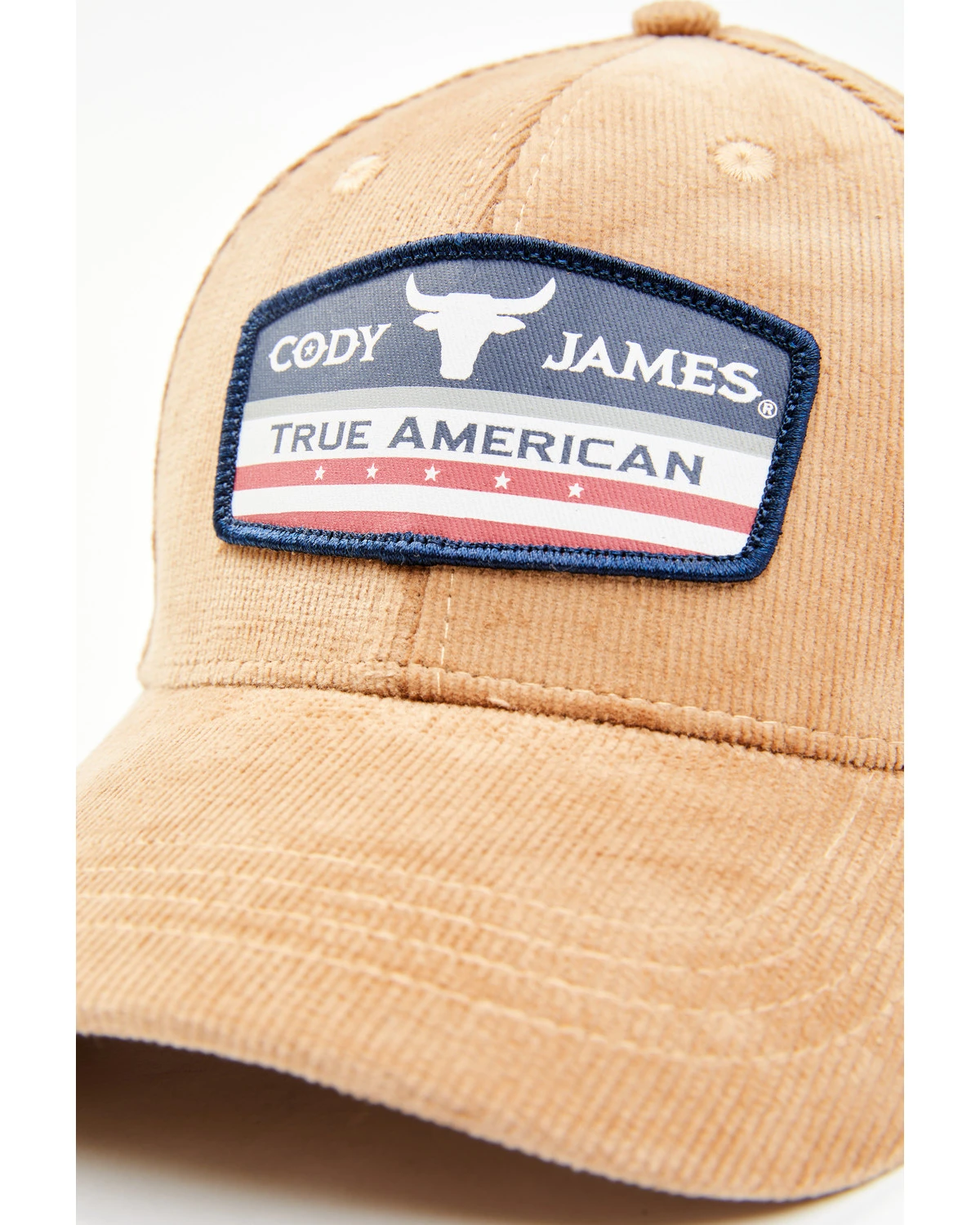 - “Cody James True American Brand” with American striped steerhead logo patch on front