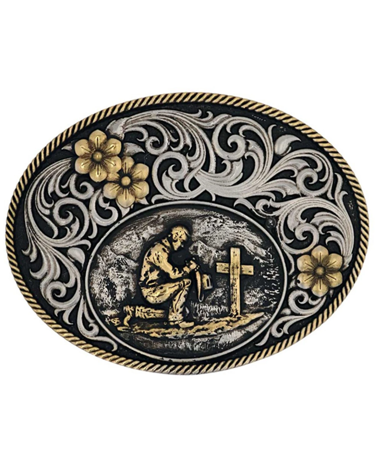 - Gold-toned classic Christian cowboy design