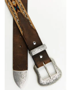 Cody James Brown 3-Piece Horse Hair Laced Southwest Inlay Belt